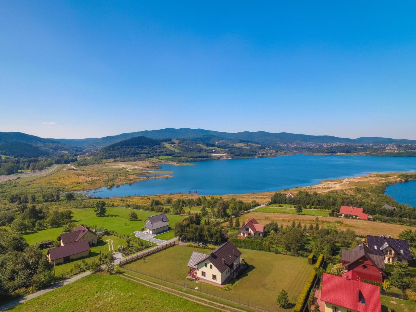 Willa. This villa comprises 2 living rooms, 5 separate bedrooms and 2 bathrooms with a bath and a shower. Guests will find a stovetop, a refrigerator, a dishwasher and kitchenware in the kitchen. The villa also provides guests with a barbecue. Featuring a terrace with lake views, this villa also provides a washing machine and a flat-screen TV with satellite channels. The unit offers 6 beds. Willa - 14 osobowy. Powierzchnia pokoju ok.: 150 mkw.