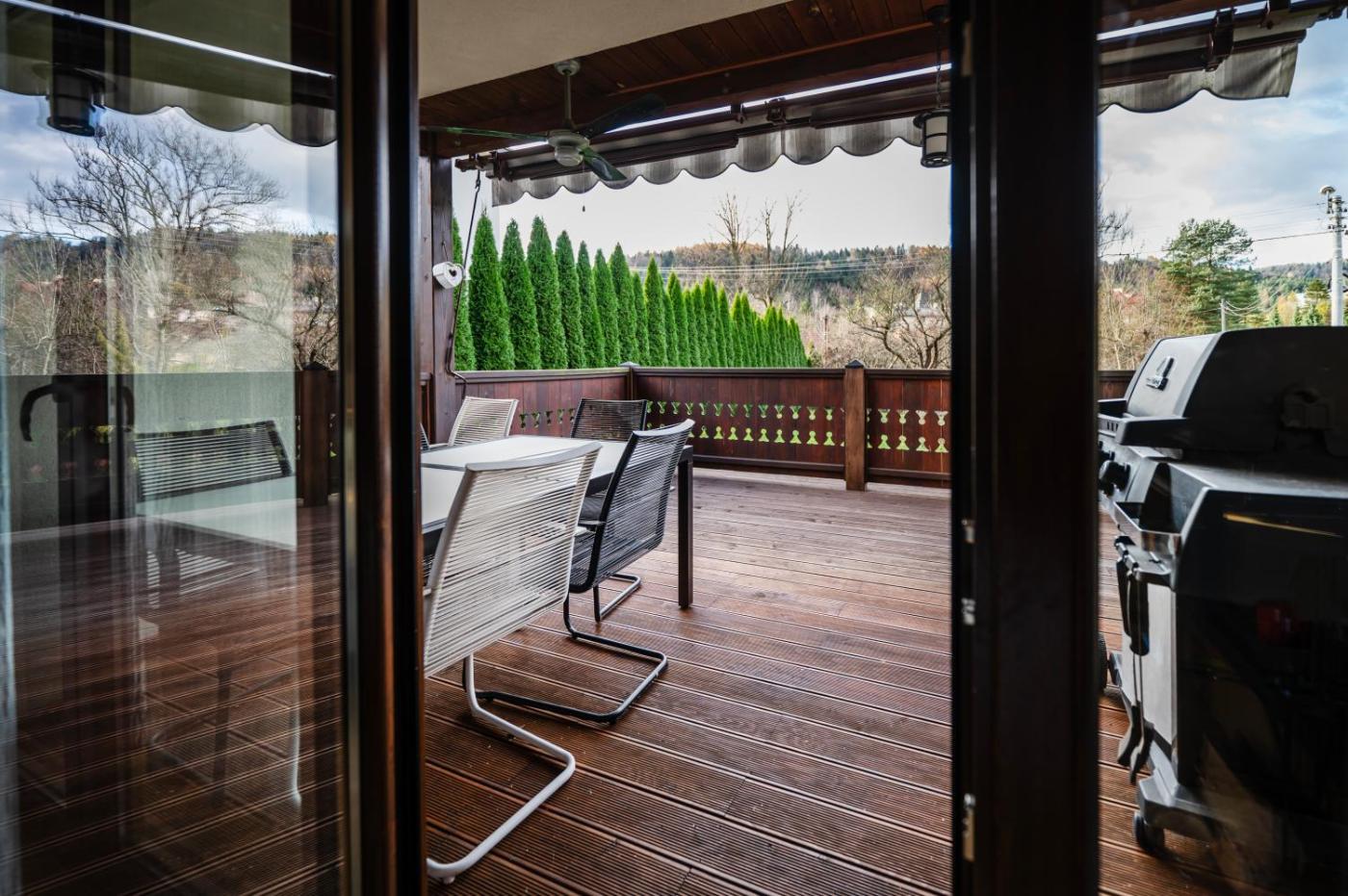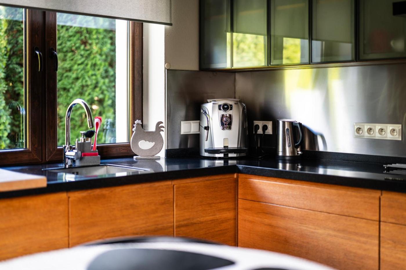 Willa typu Superior. The fireplace is a top feature of this villa. This villa comes with 1 living room, 5 separate bedrooms and 3 bathrooms with a shower and a bidet. Guests will find a stovetop, a refrigerator, a dishwasher and kitchenware in the kitchen. The villa also includes a barbecue. Boasting a terrace with garden views, this villa also features a washing machine and a flat-screen TV with streaming services. The unit has 8 beds. Willa - 10 osobowy. Powierzchnia pokoju ok.: 110 mkw.